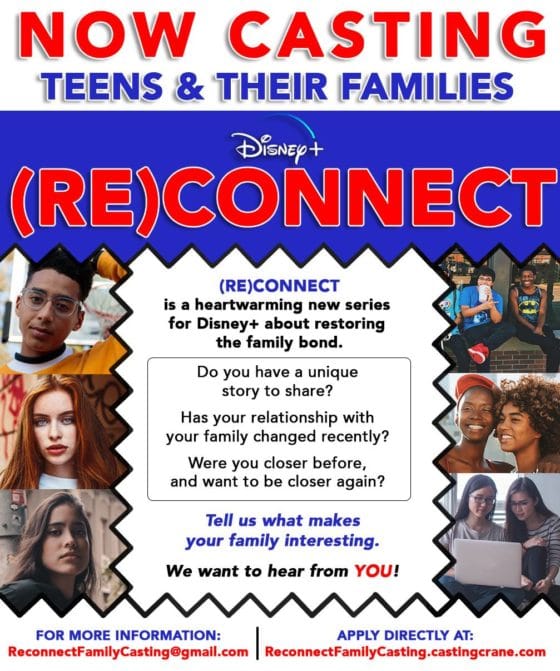 Casting will run into July, but obviously, the earlier a family submits their application the better. Families can request more information by emailing – ReconnectFamilyCasting@gmail. com. They can also apply directly at reconnectfamilycasting. castingcrane.com.